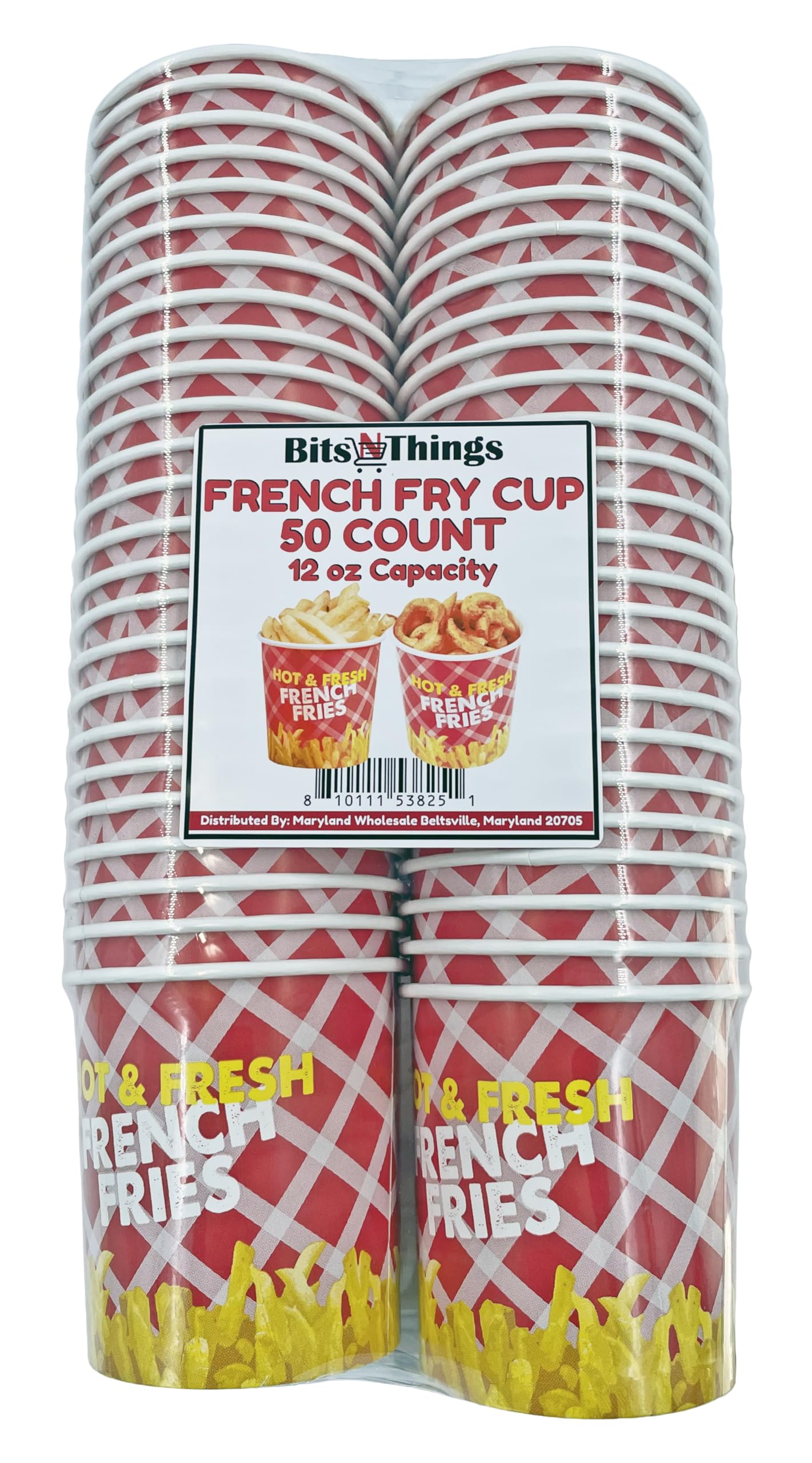 Bits N Things French Fry Cup (Red) | No PFAS Added | 50 Count | 12 oz. Capacity